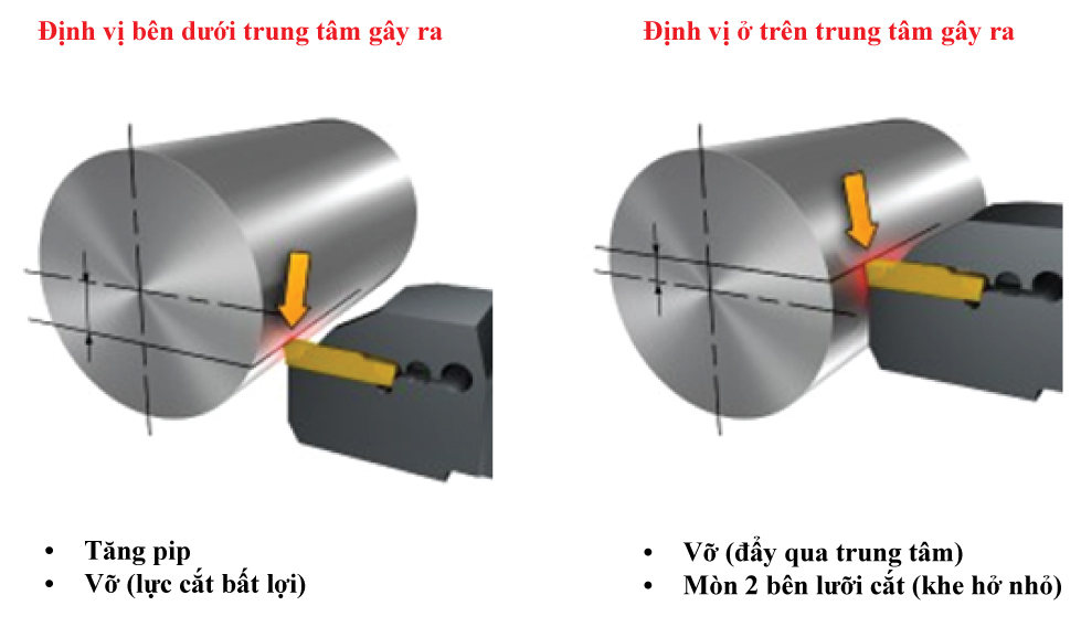 Đảm bảo rằng các lực thấp nhất có thể được tạo ra. Sử dụng insert có chiều rộng nhỏ nhất có thể và các cạnh sắc nét nhất.