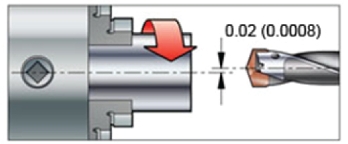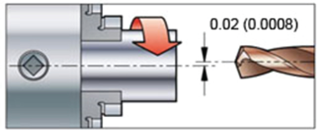- Khoan carbide nguyên khối: Độ lệch tâm chỉ định với khoan carbide nguyên khối là không vượt quá 0.02 mm (0.0008 inch)