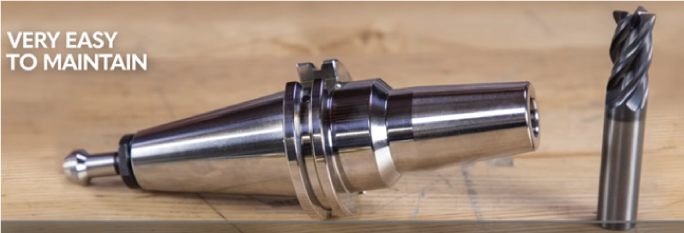 + Với kiểu cán dao này tính linh hoạt tốt. Mỗi kích thước dao chúng ta chỉ cần thay đổi 1 collet phù hợp với đường kính dao.