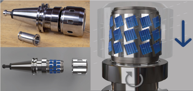 + Hoạt động cơ học này tạo cho chúng ta một lực kẹp không thể tin được. Có thể tạo ra lực kẹp lớn gấp 5 lần so với bầu kẹp collet ER.