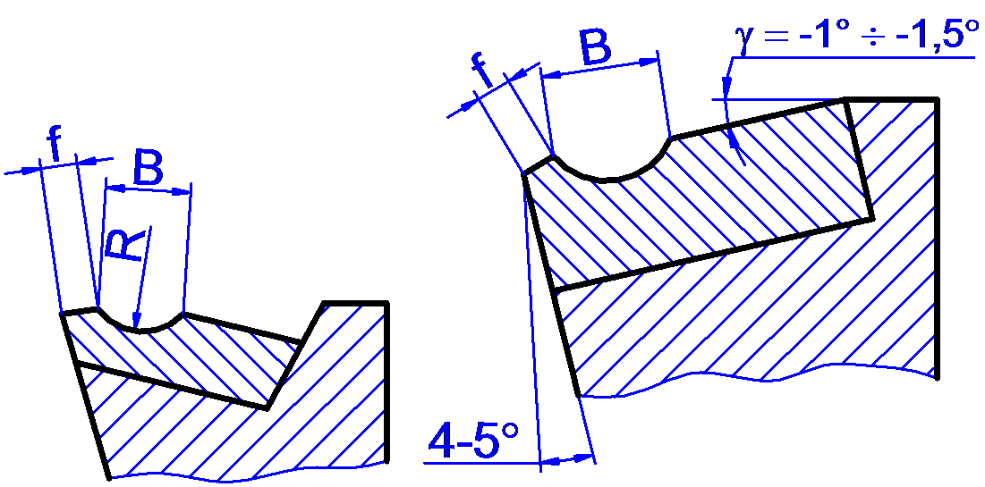 - Để cuốn phoi và bẻ phoi tốt cũng như tăng bền cho gờ nổi,cần vê tròn rãnh gờ theo bán kính R=0.25÷0.75mm.