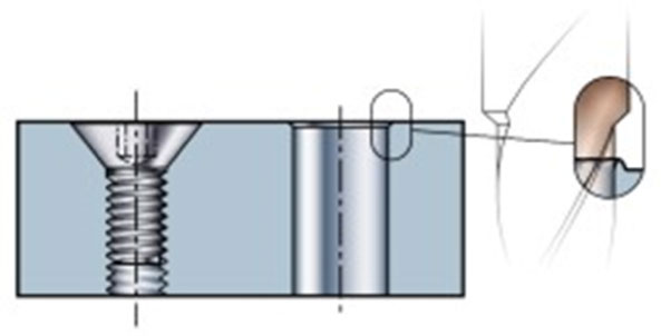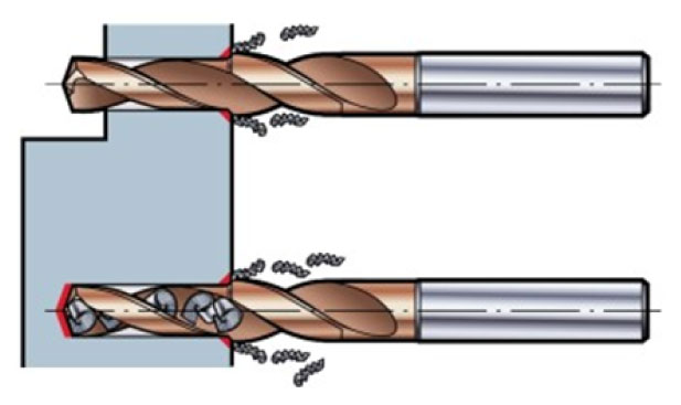Dùng dao khoan lỗ vát mép ghép mảnh (insert drills and Chamfering) để tạo ra được các lỗ khoan có mép vát tương tự như (solid carbide drills and Chamfering). Đặc biệt của kiểu dao khoan này là vị trí vát mép có thể tùy chỉnh phù hợp với nhiều độ sâu lỗ khác nhau.